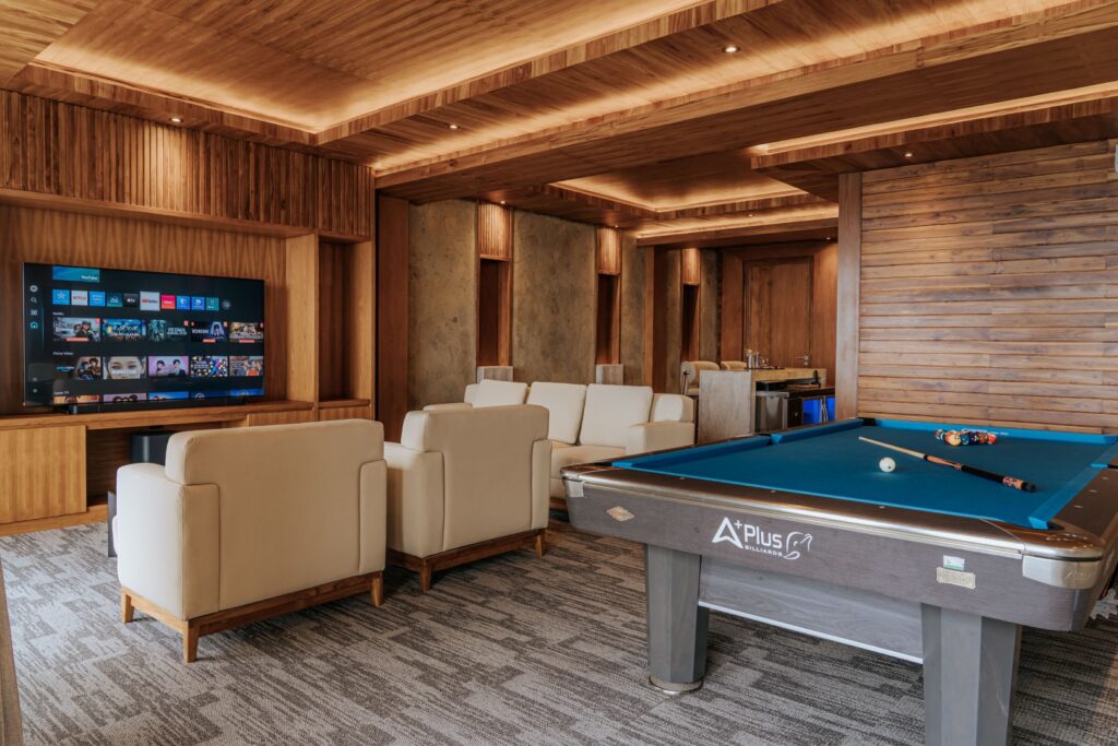 Equipped with a large-screen television, a billiards table, and a selection of classic board games for all ages.